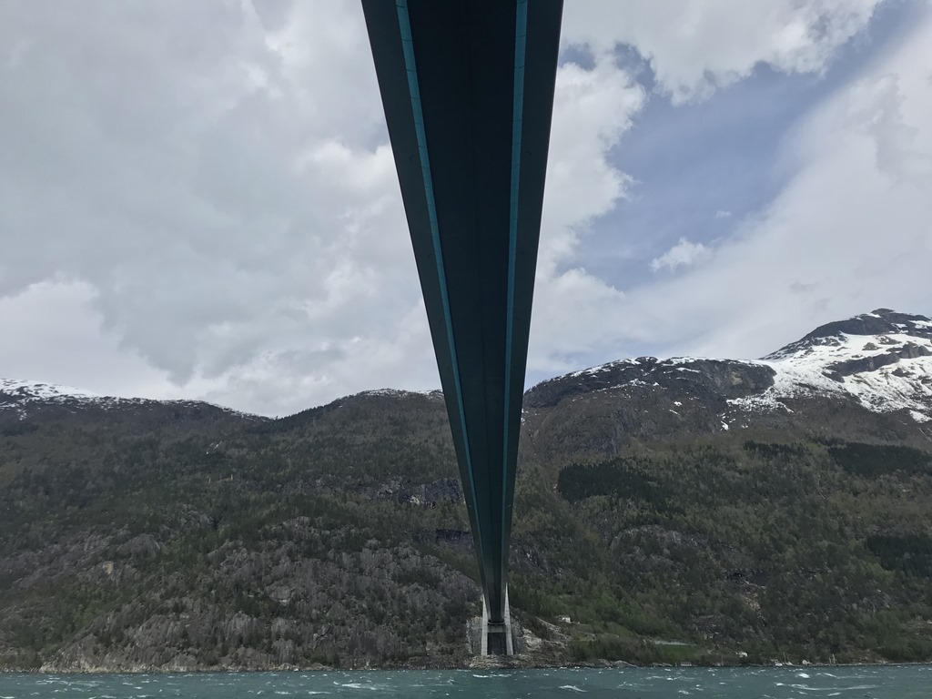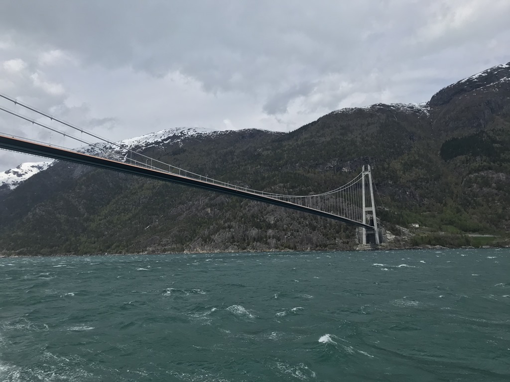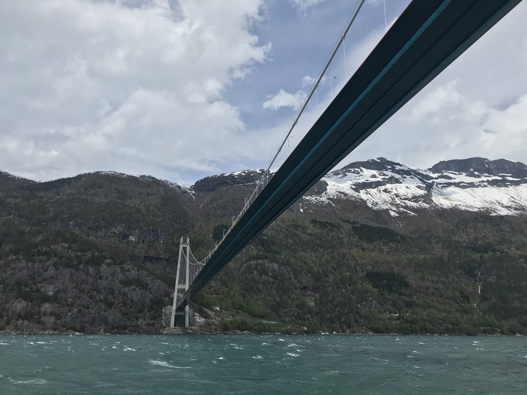 När vi passerar Hardangerbron så blåser det 20-25 m/s.