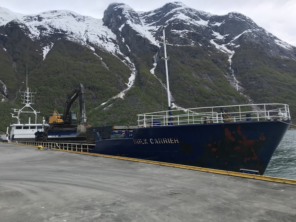 13:45 Förtöjda i Eidfjord på kryssningskajen och börjar genast lossa. Är ju inte en enda kryssningsbåt längs kusten i år. Alla anlöp är kancellerade så det är bara kryssningsbåten Bulk Carrier som trafikerar fjordarna i sommar.