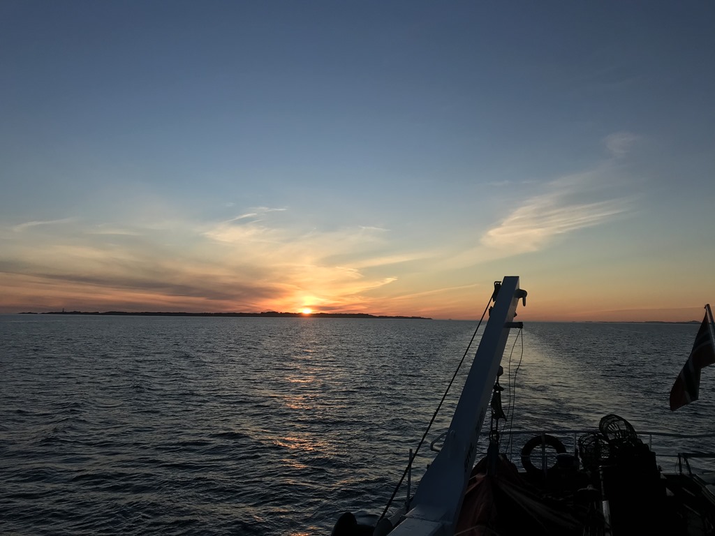 20:00 Kommer på vakt när vi passerat Alden. Fortsätter söderut denna fina kväll.