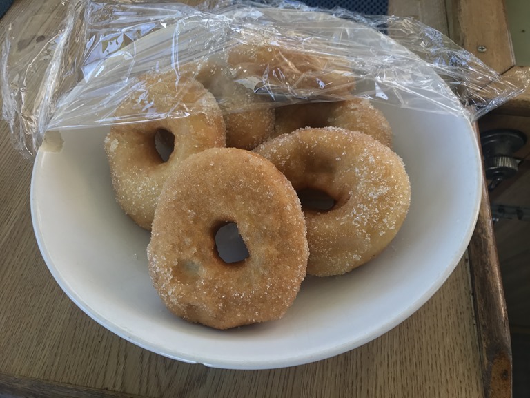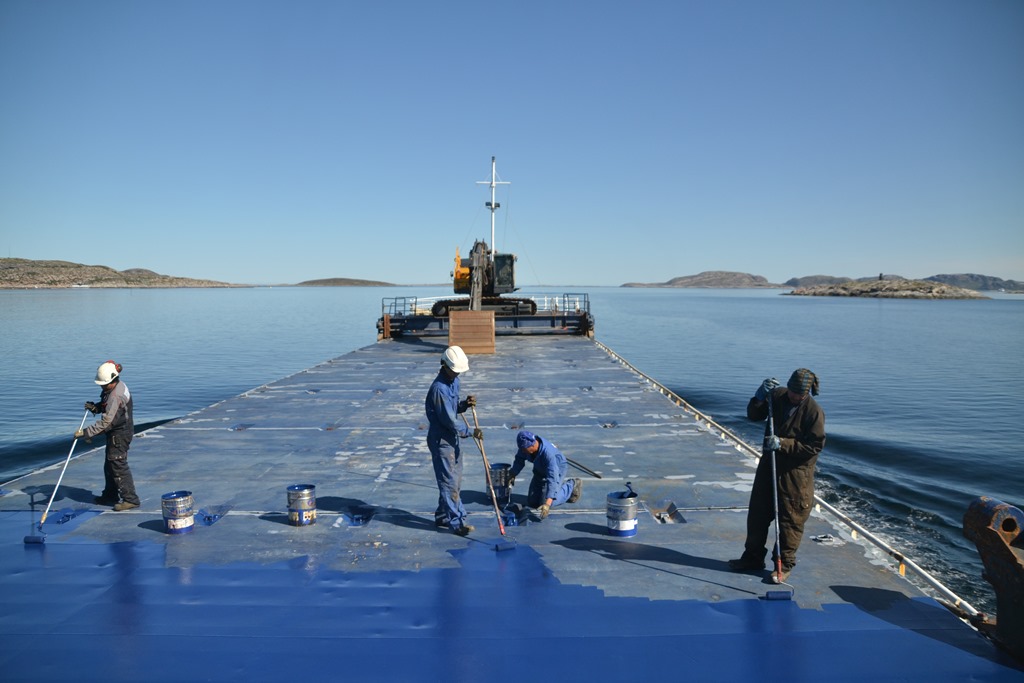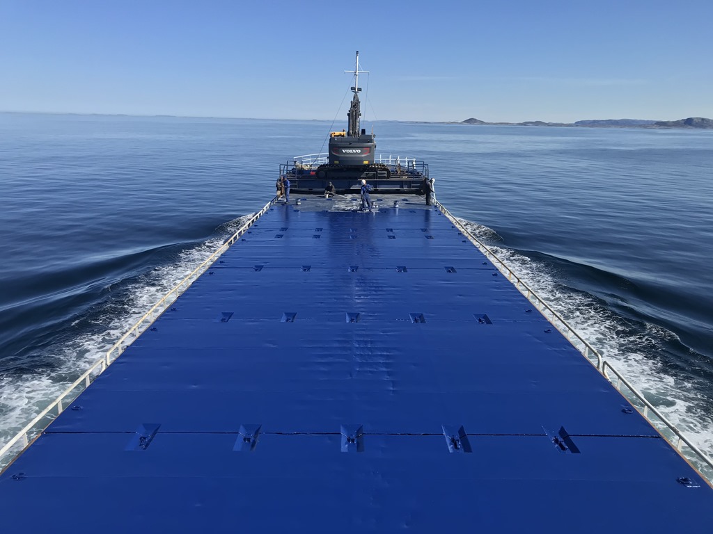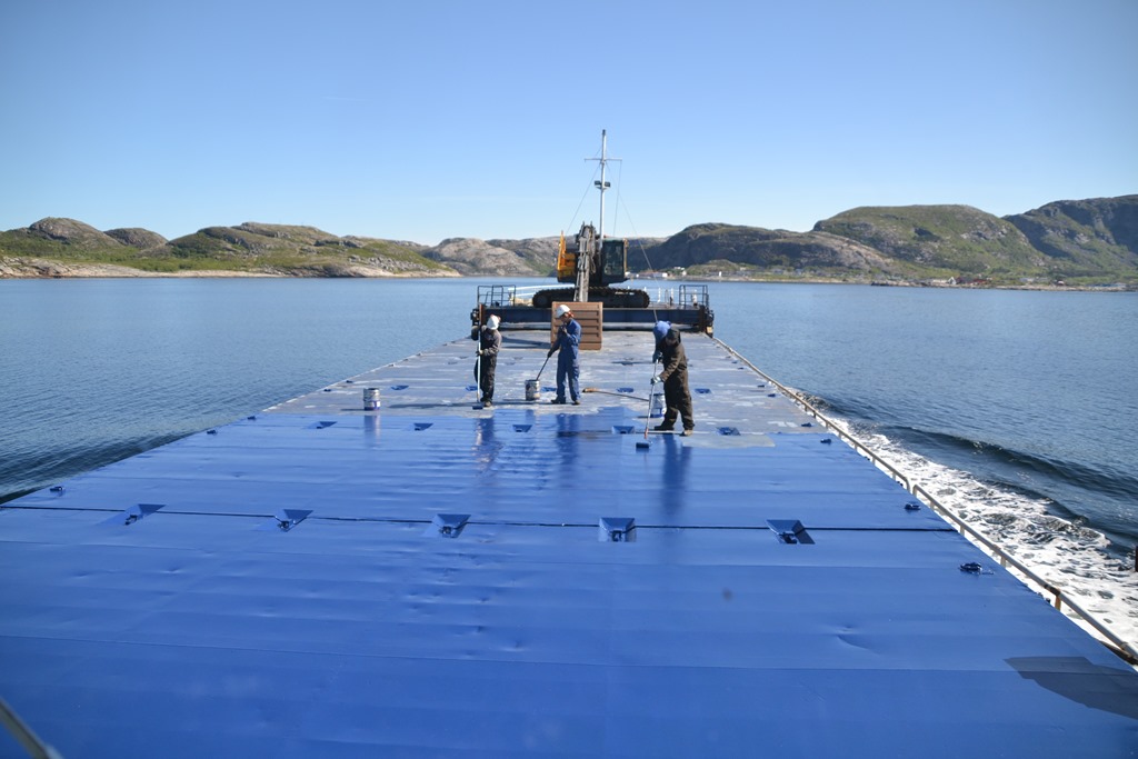 Manskapet målar lastluckorna och vi närmar oss Ramsöysundet strax innan det så ligger en fin ställplats som vi besökte i somras. Precis vid bron fanns det en ställplats med fina möjligheter för fiske. Inga fasiliteter och gratis.
