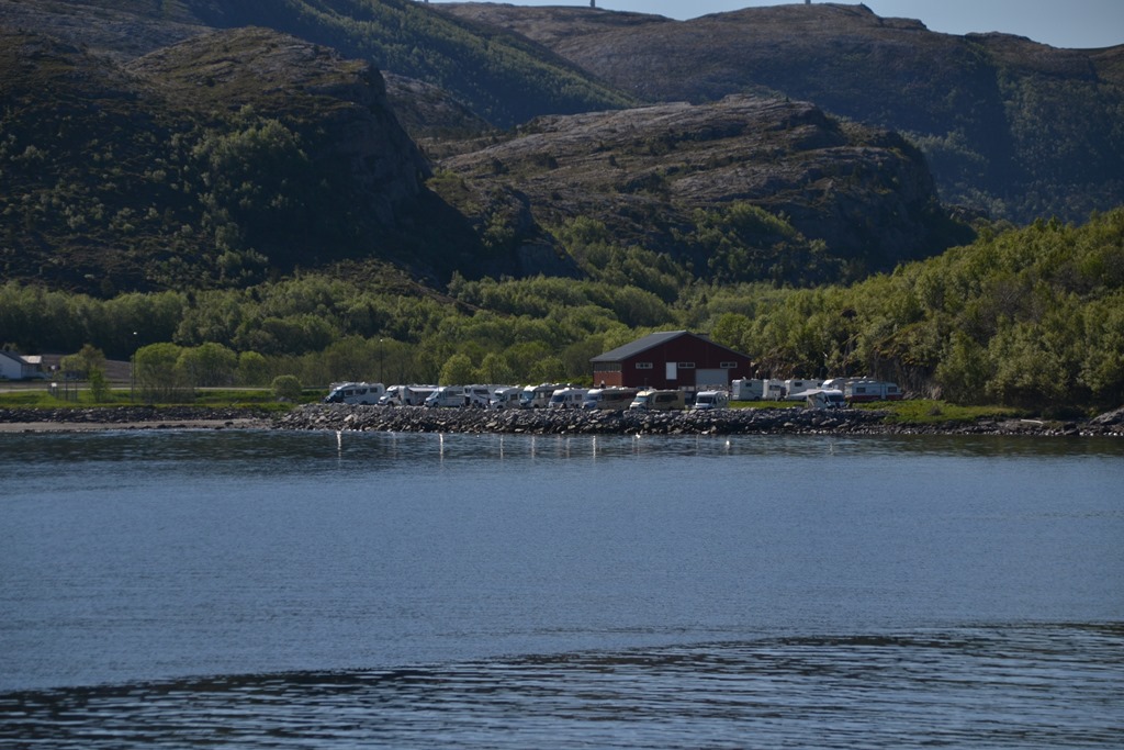 Där inne ligger en fin liten ställplats ser det ut som, men det var helt tomt vid rorbuerna som brukar vara fulla med sportfiskare.