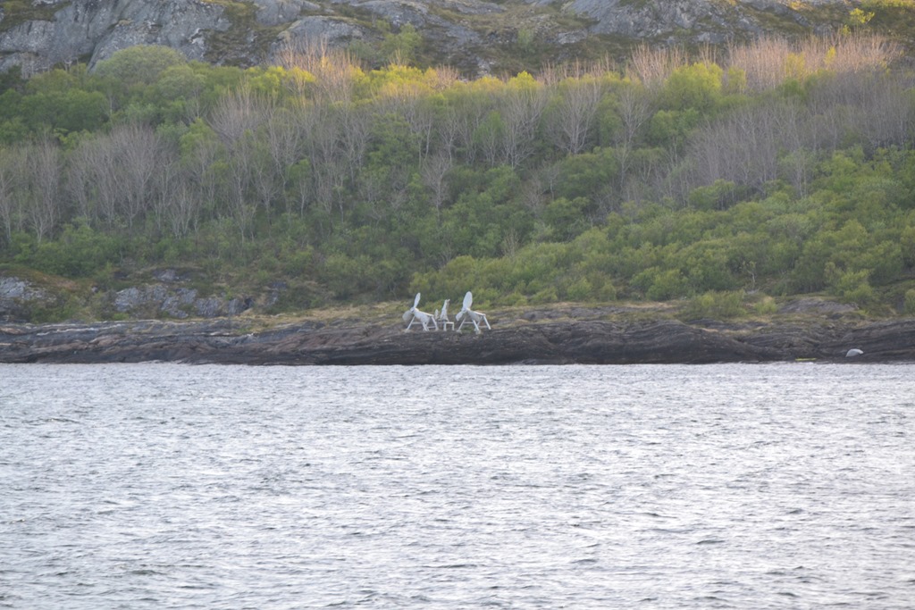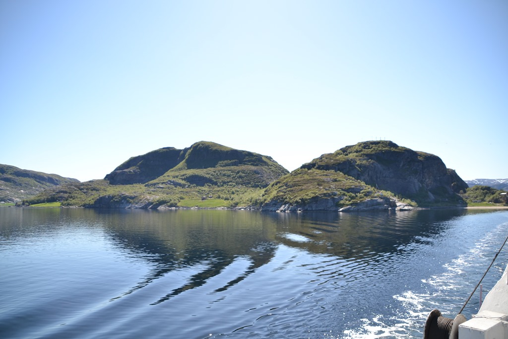 Vi passerar Rosøya där det står 3 propellrar som minne efter M/S Rigel som sänktes här 27 November 1944 och över 2500 dog.