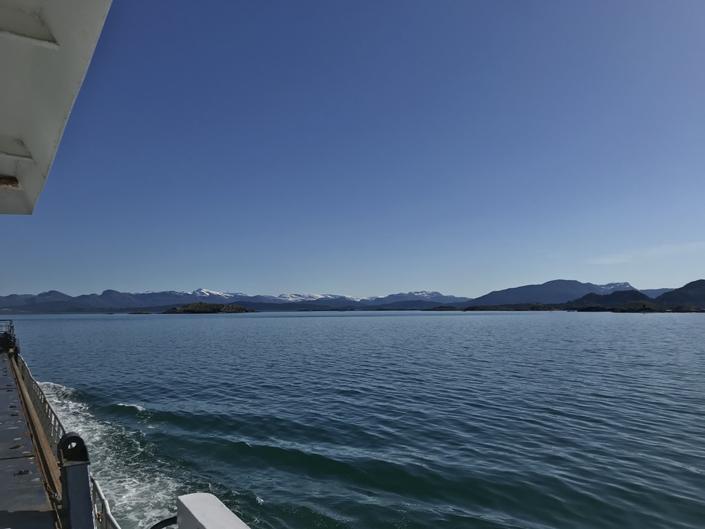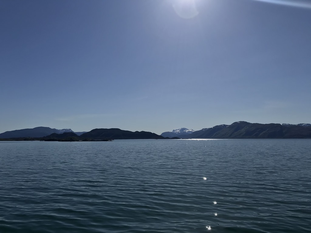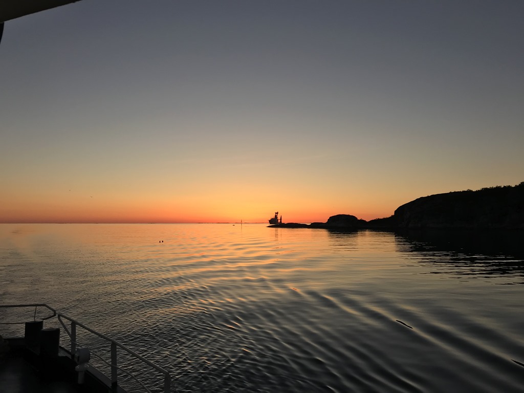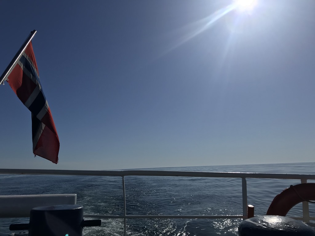 17:00 Vaknar och går upp för att titta lite på utsikten. Eftersom det var så fint väder idag så valde vi att fortsätta på utsidan. Havet är ju helt stilla idag.