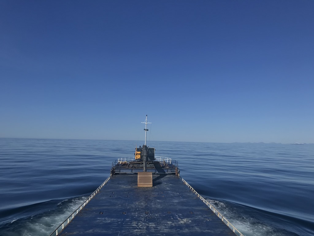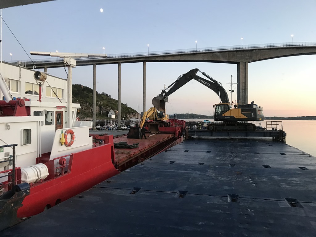 01:55 Förtöjda på ett spring i Laksevåg och lyfter iland armen till Bulk Vikings grävmaskin.