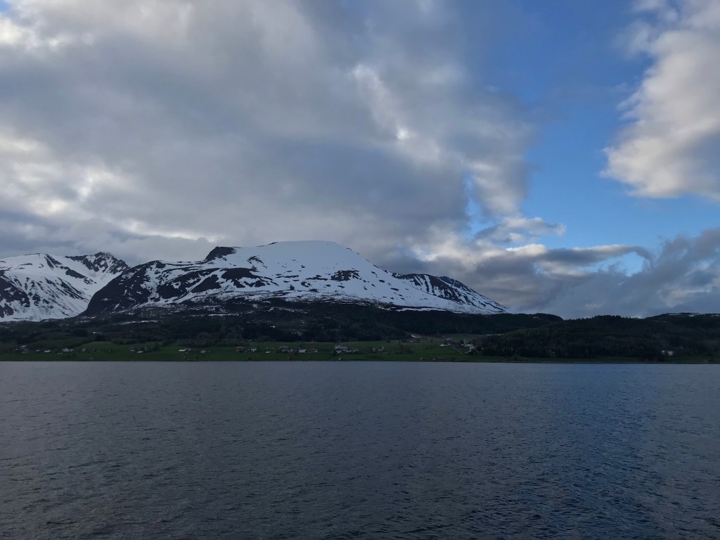 08:00 Kommer på vakt när vi passerar Bodö. Inte lika fint väder som de andra dagarna men det blåser inget.
