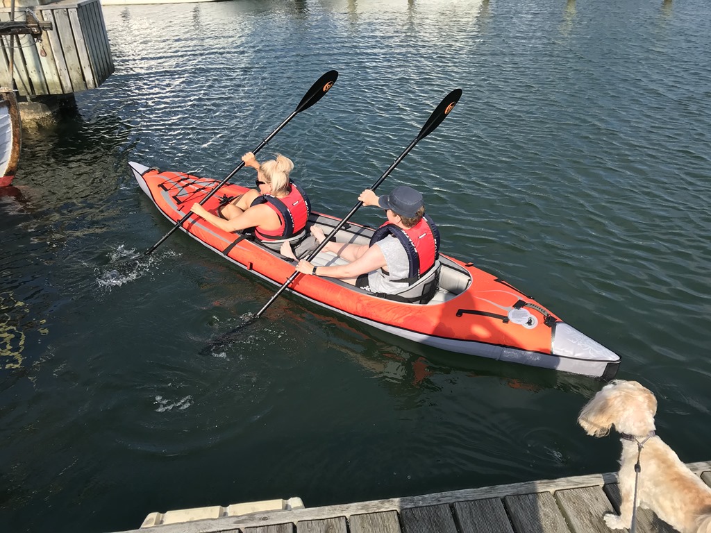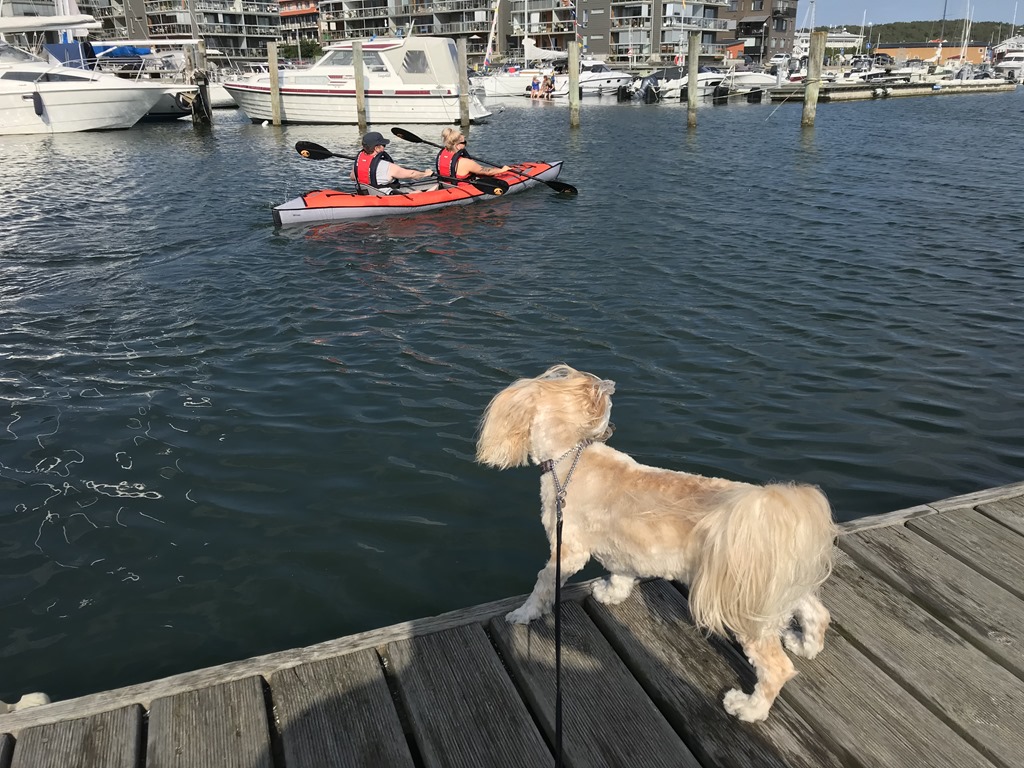 Vi plockade sedan fram kajaken och först så gav jag och Elin oss ut på en runda i hamnen. Sedan så ville Britta prova och det verkade som att Chili ville varit med också. Var riktigt lättpaddlad och stabil.