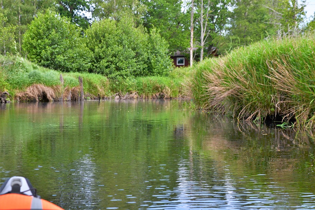 Efter frukosten så var det bara jag som gav mig iväg med kajaken. Jag paddlade bort till Kättarpsån och fortsatte den uppåt i 2,8 km. Den var betydligt mindre än Lillån men ändå väldigt bra att paddla i.