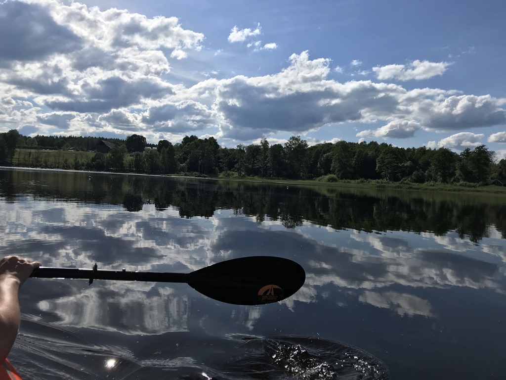 Det tog 15 minuter längre att paddla tillbaka men nu var det riktigt varmt och helt vindstilla.