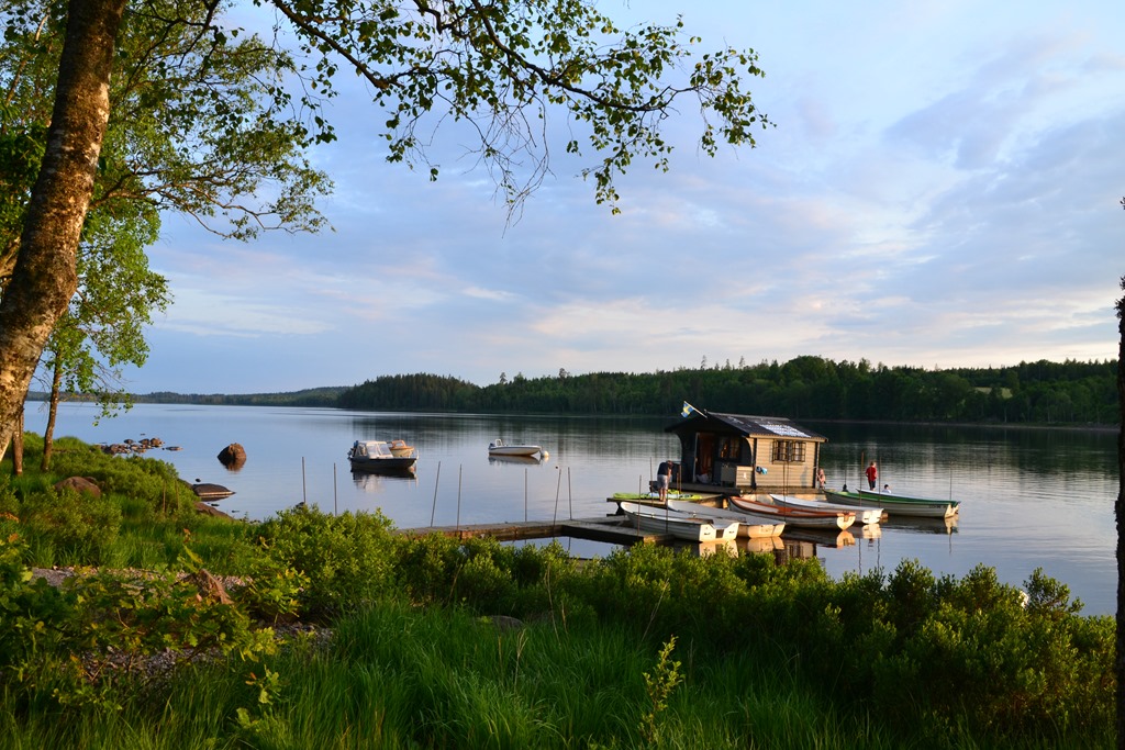Vi packade ihop och begav oss österut 15 km. Vi stannade först till vid affären i Kalv för att handla jordgubbar och lite andra färskvaror. Därefter körde vi till Kalvs Familjecamping. Vi kom ju ganska tidigt men fick i gengäld en riktigt fin plats nere vi sjön.