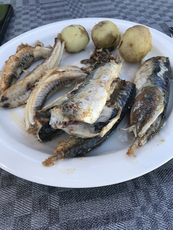 Britta och Elin är ute och paddlar kajak så jag steker lite småmakrill och knot till mig. ![]()