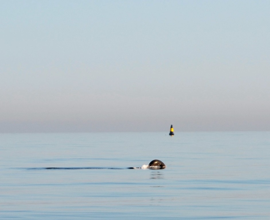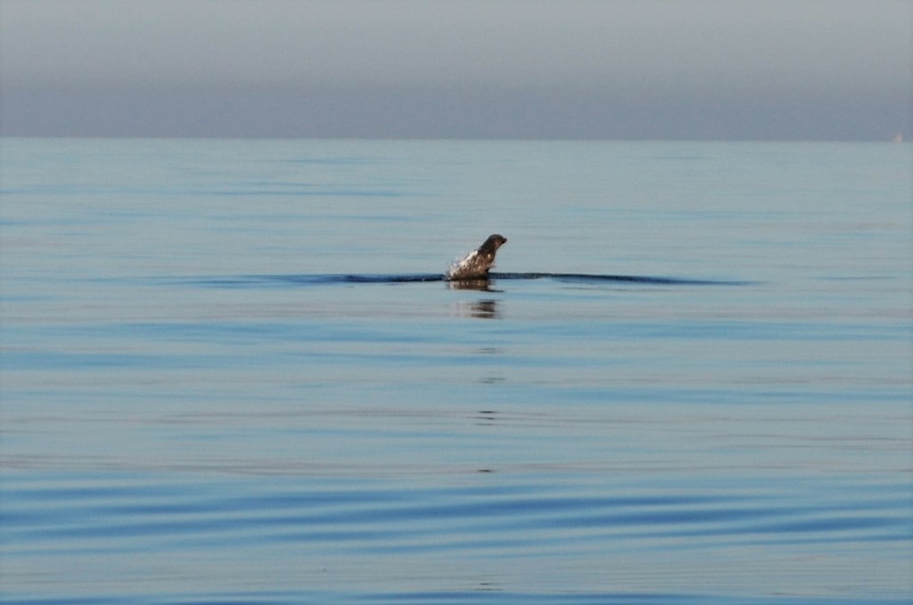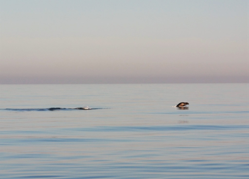 Trodde först det var tumlare jag såg som hoppade men det var 2 sälar som simmade omkring och hoppade i vattnet.