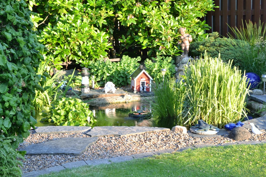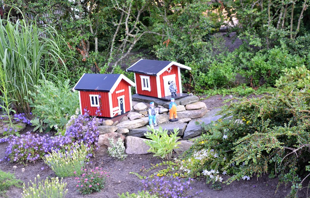 Efter maten så går vi hem och sätter oss i trädgården och tar lite gott att dricka. Det är fint hemma i mammas trädgård nu.