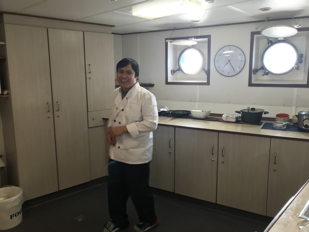 19:30 Går för att äta och ser att kocken fått på sig fin uniform idag.