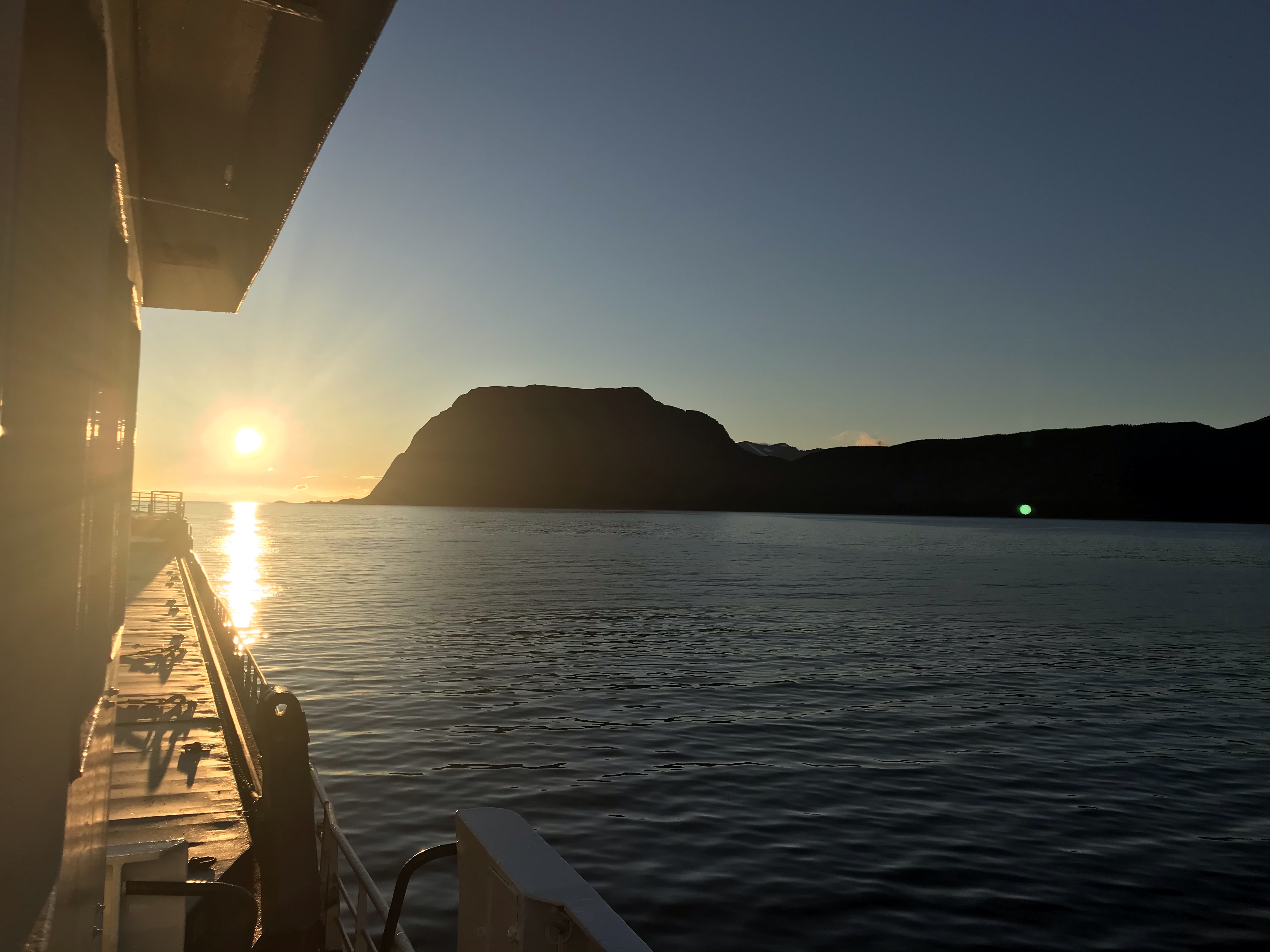 20:10 Avgår och sätter kursen ner mot Tjeldsundet.
