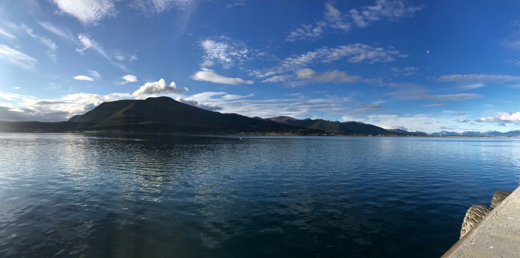 01:00 Passerar Andøybron efter Risøyrenna. Ser en flock med Lunnefåglar i vattnet. Men de är för långt bort för att kunna få en fin bild av deras fina näbbar.