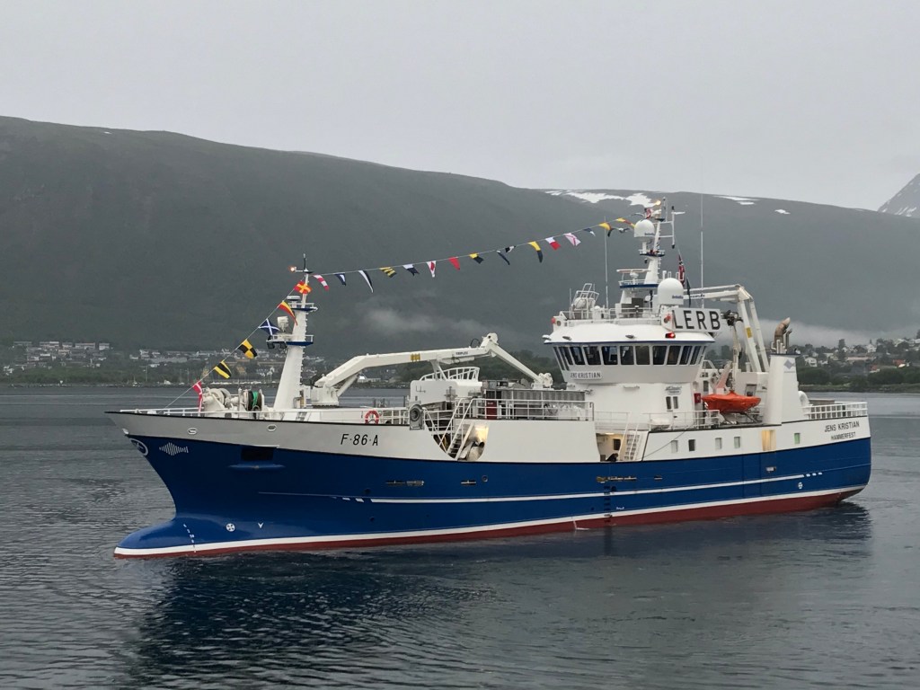 22:05 Förtöjda på Bunker oil precis akter om en nybyggd fiskebåt som haft visning idag. När vi är förtöjda så avgår dem.