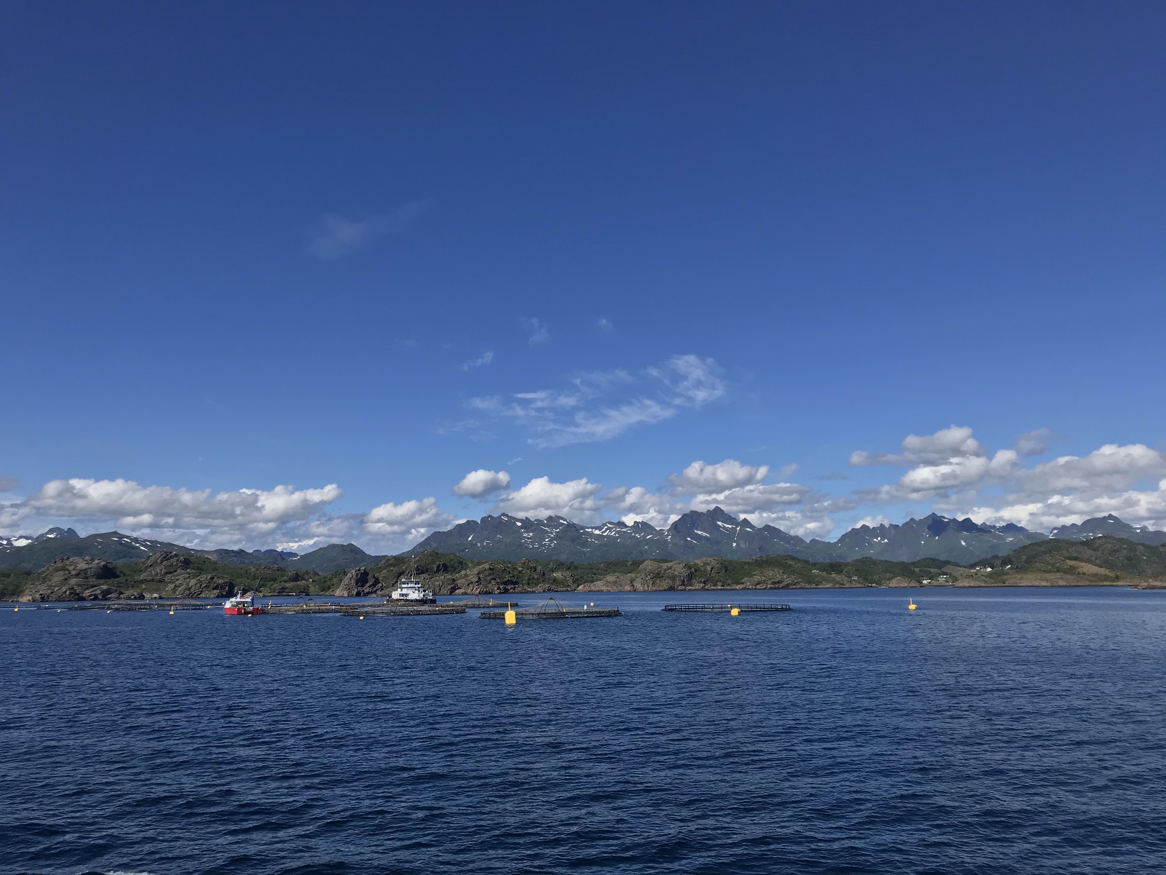 18:45 Förtöjda i Leknes och avvaktar order om att öppna upp luckorna. Blir ännu en fin kväll.