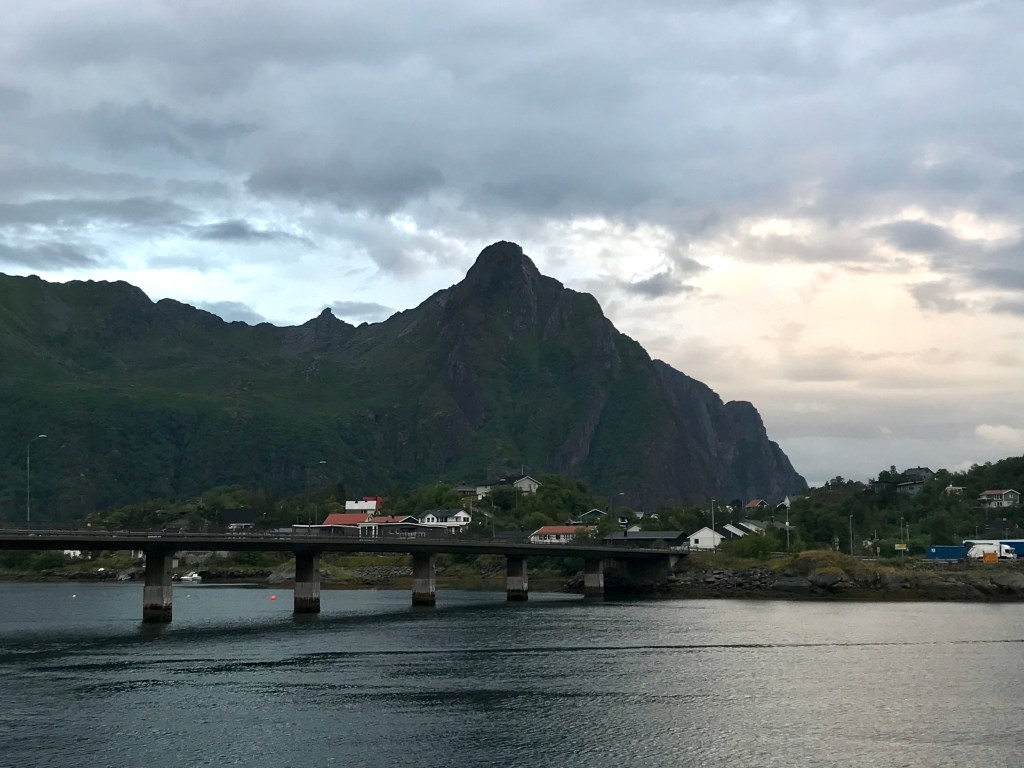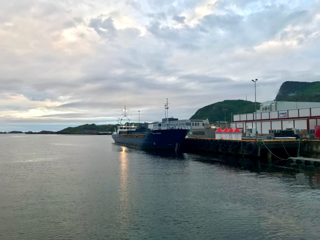 20:45 Förtöjda på Osan vid Svolvær. Men det ösregnar just nu så vi får inte börja lossa ännu.
