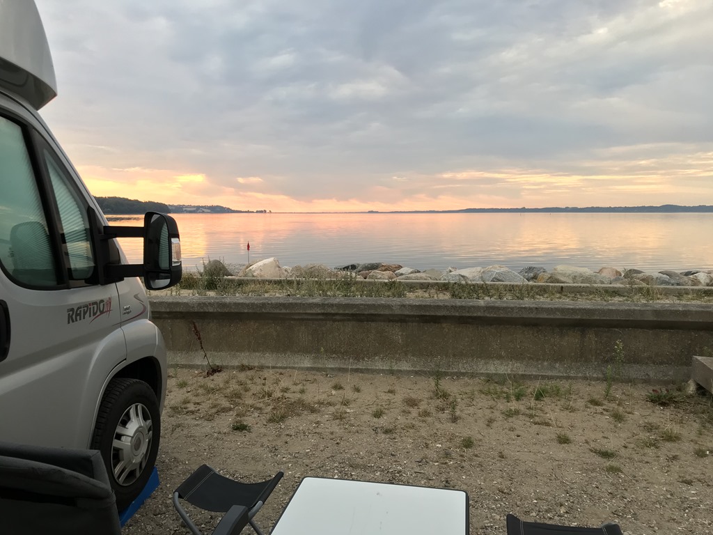 09:00 Efter frukost så körde vi bort för att tömma gråvatten och toa innan vi fortsatte österut. Vi siktade in oss på Karrebaeksminde och hoppades att där skulle finnas plats.
