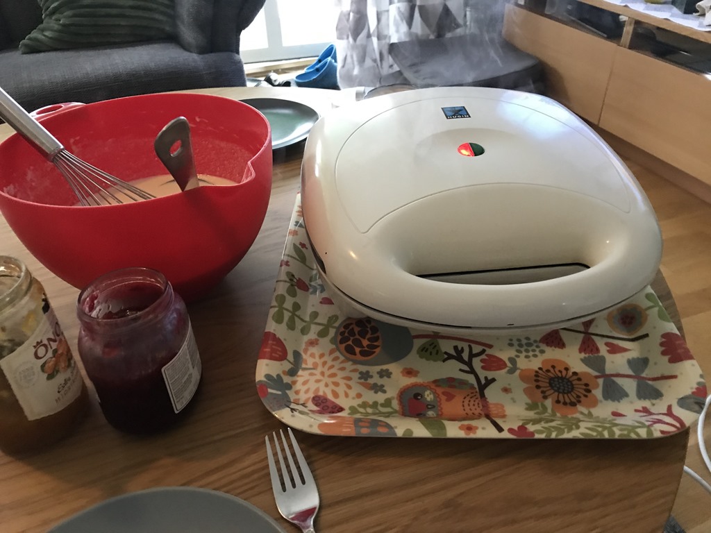 Väl hemma så packade vi ur husbilen och gjorde rent. Vi hoppade över lunchen utan det blev våfflor till kaffet istället.