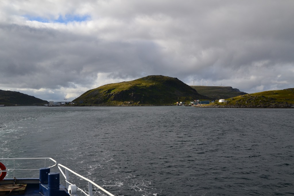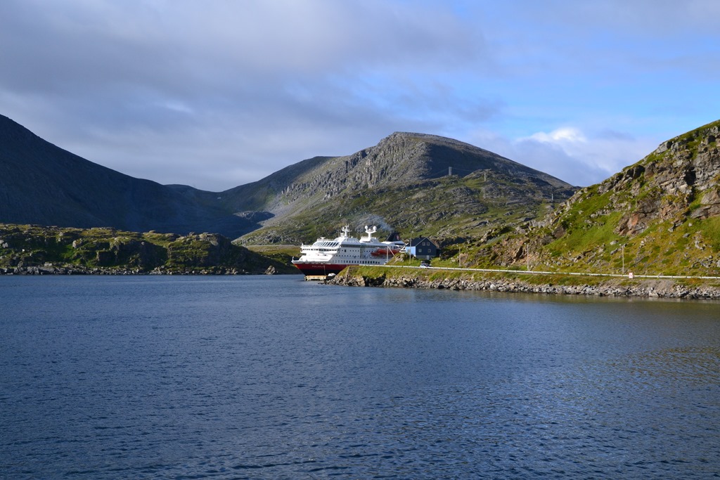Blir en dag med väldigt växlande väder. Regn, solsken och blåst om vartannat. Hurtigruten är inne för lossning av lite gods och kanske några passagerare. De skulle egentligen gått för fullt igen men sedan utbrottet på Roald Amundsen så har de stoppat fortsatt öppning.