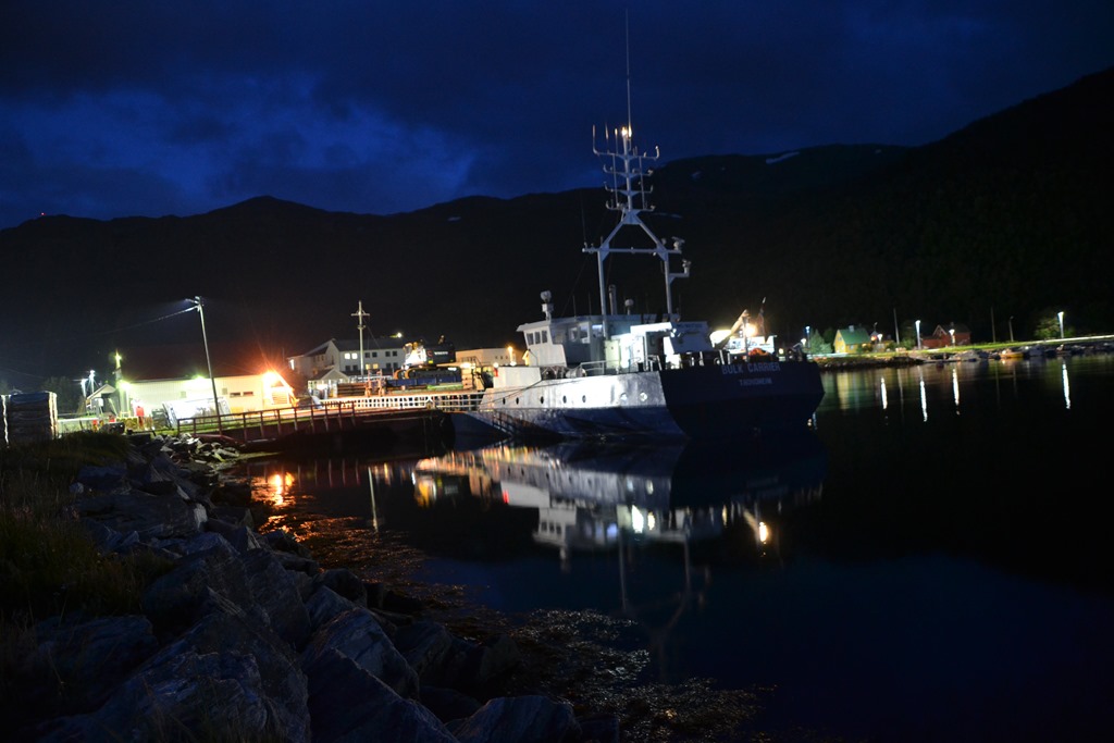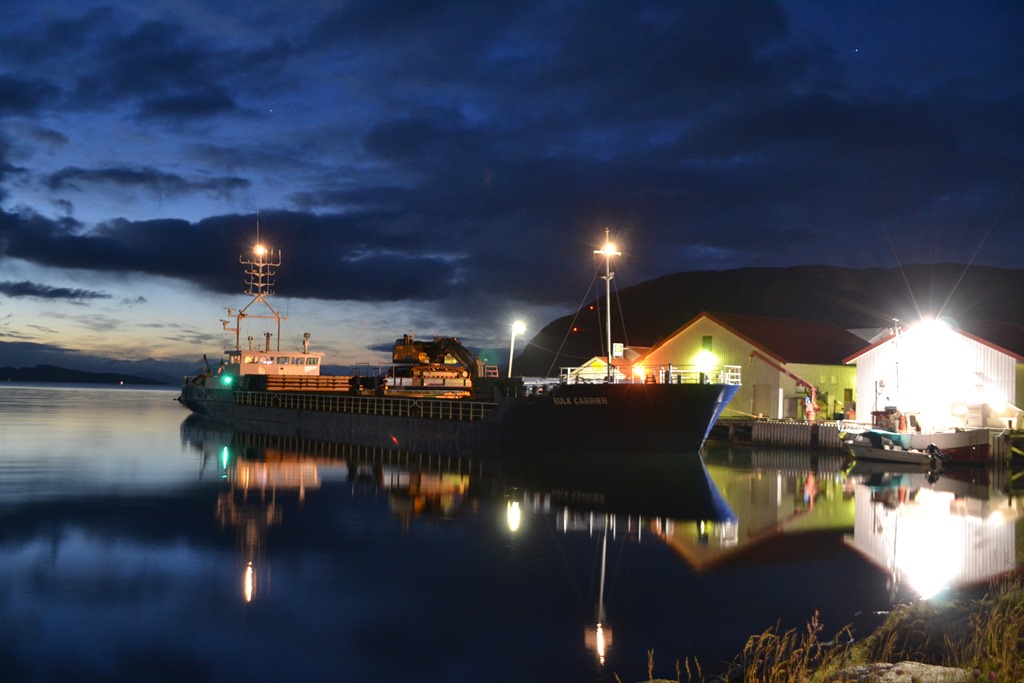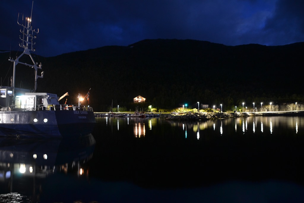 16:55 Förtöjda i Sörkjosen och gör klart för morgondagens lossning. Så resten av dagen blir lugn.