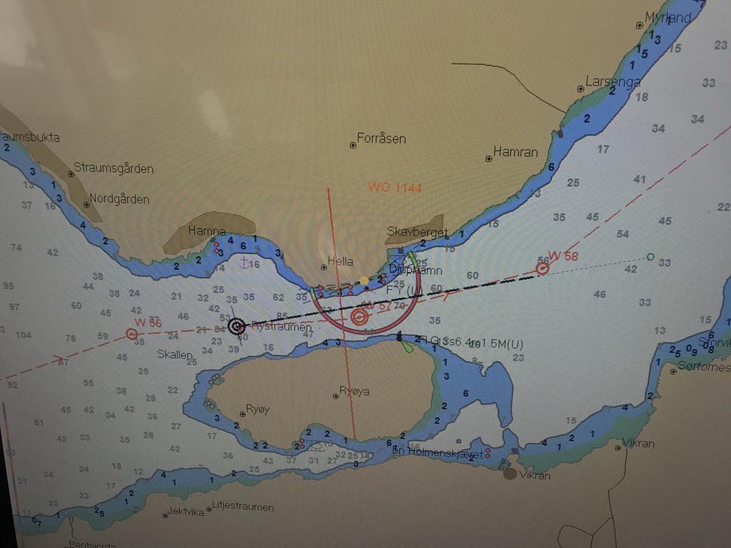 När vi kommer upp till Rystraumen strax innan Tromsö så kommer vi precis när det är som mest tidvattenström Det riktigt kokar i vattnet och vi kommer upp i 15,5 knops fart.