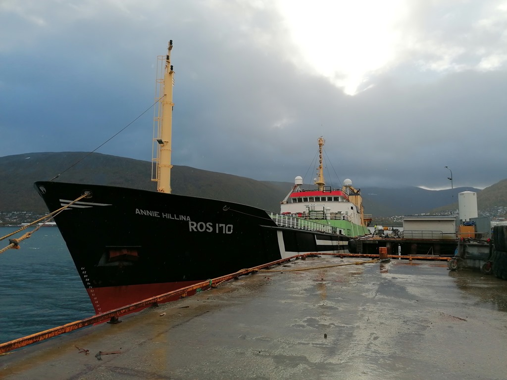 21:00 Förtöjda på Vannøya och gör klart för morgondagens lastning. Det är en hel del vind så vi får sitta vakt hela natten.