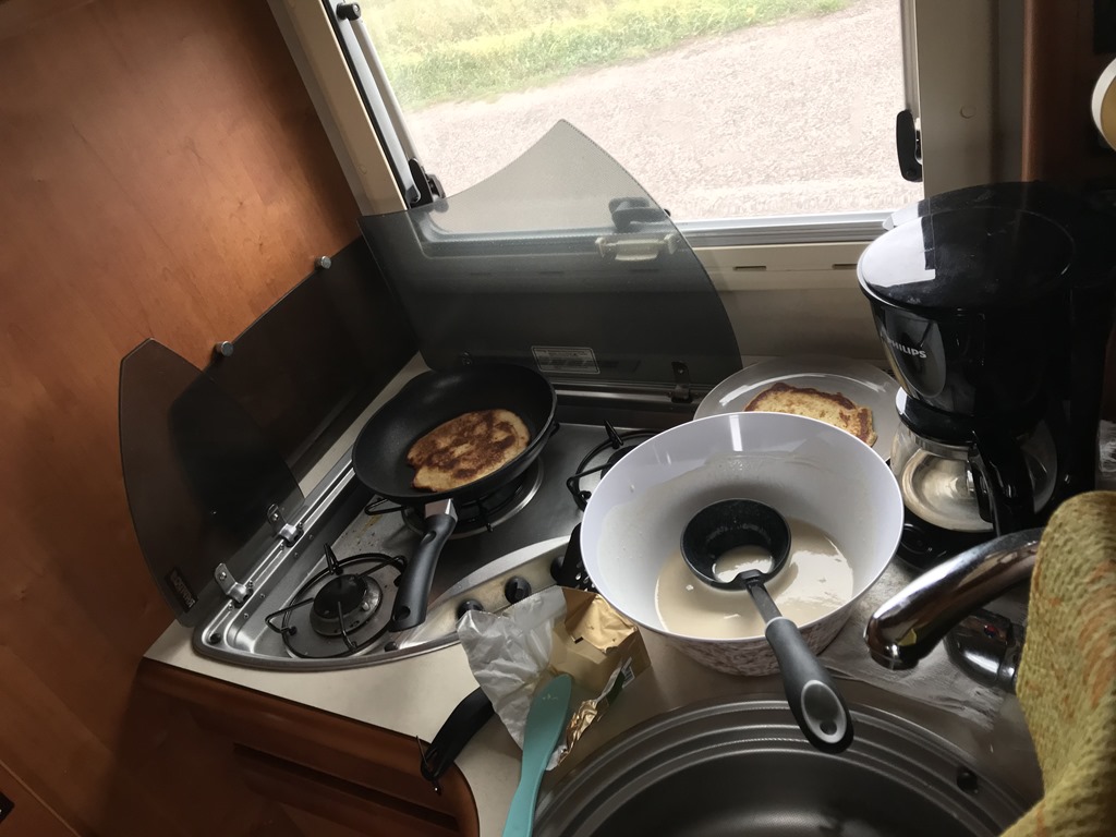 Vi körde sedan vidare söderut och stannade ute vid Kapelludden där jag gjorde lite amerikanska pannkakor till lunch.