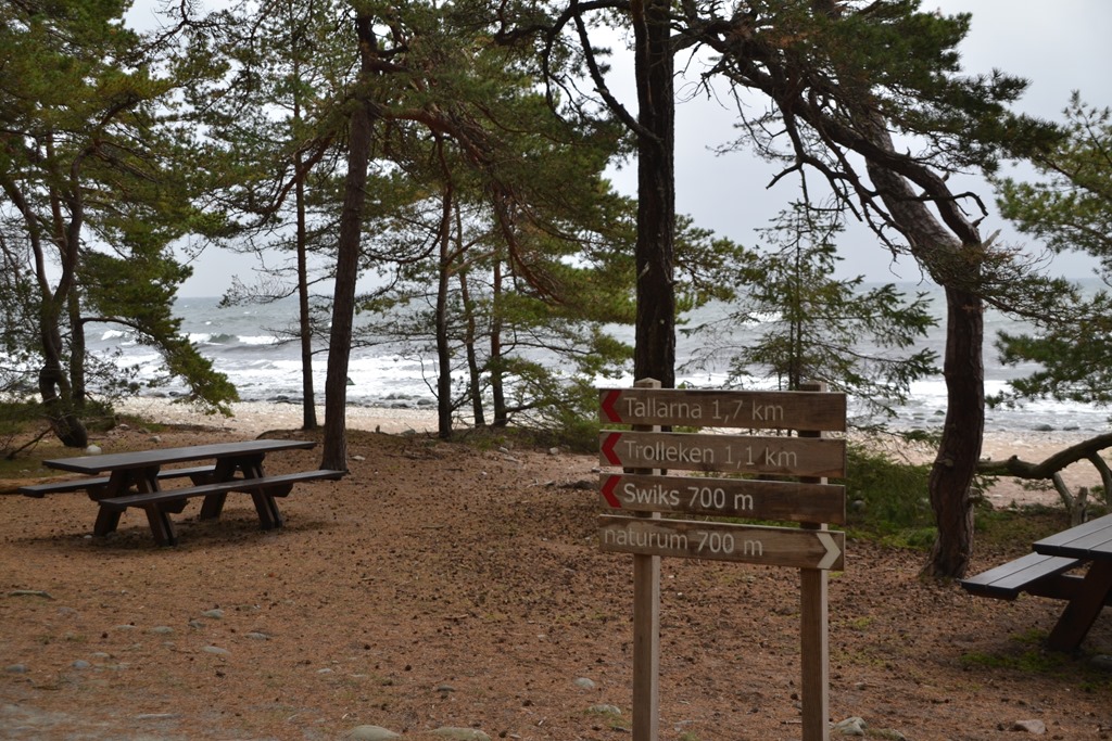 Efter frukost så körde vi norrut igen eftersom vi ville se Trollskogen. Det blåste ganska mycket och var mulet men inget regn och när vi kom upp dit så var vi nästan ensamma där. Tog en promenad på östsidan längs stranden.