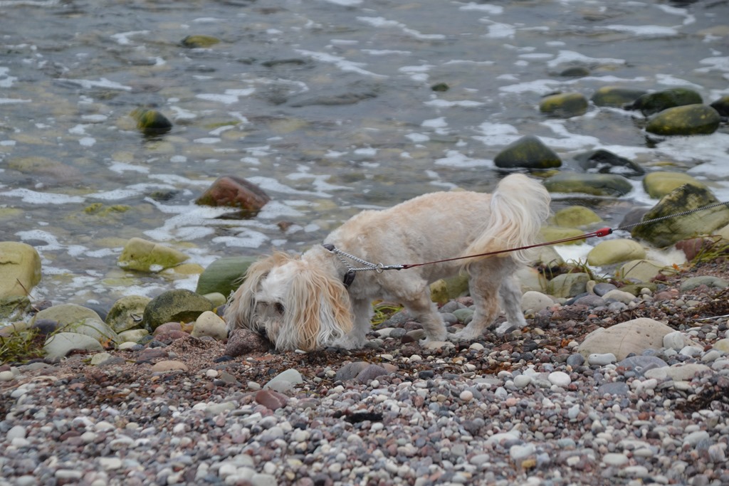 Chili gillar att gå i strandkanten och nosa.