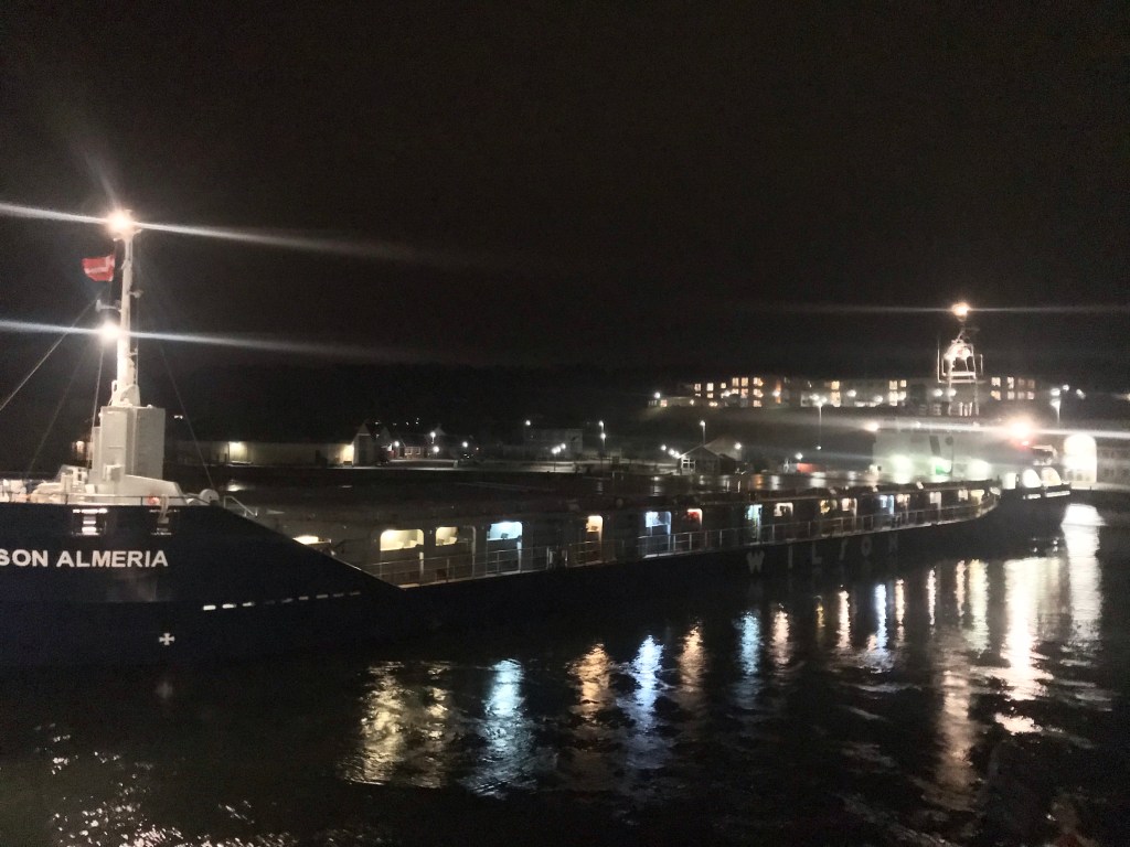 Ja lossningen gÄr fort nÀr vi bara tömmer det rÀtt pÄ kajen sÄ jag bestÀller lots till 23:30.