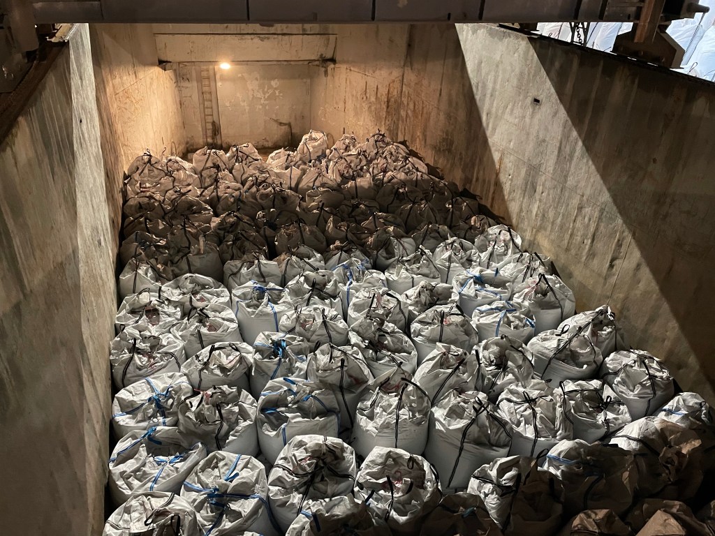 22:45 Avslutar lastningen för idag och nu har vi 505 säckar ombord.