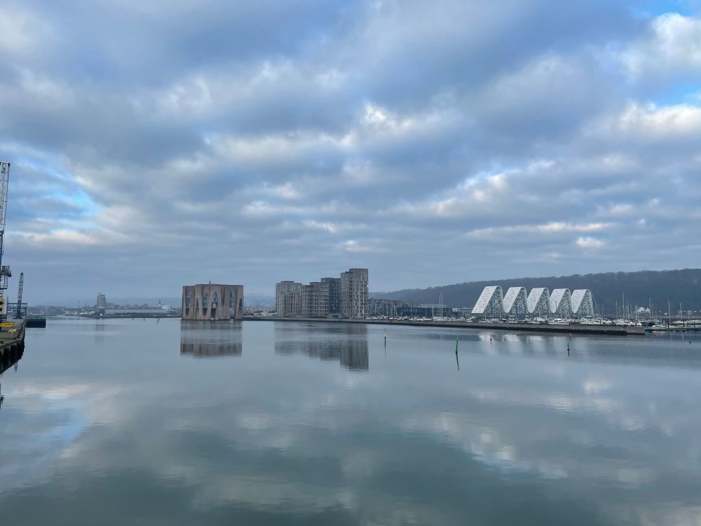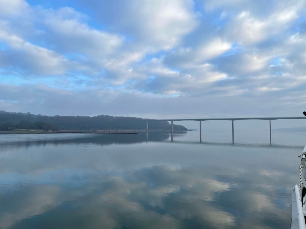 08:00 Kommer på vakt och vi börjar lossa. En mulen morgon men vindstilla.