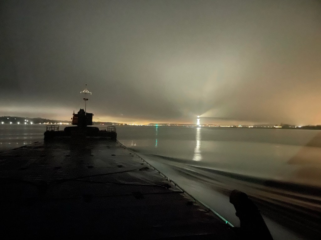 01:10 Passerar Friedrichsort Lighthouse på ingående till Kiel.