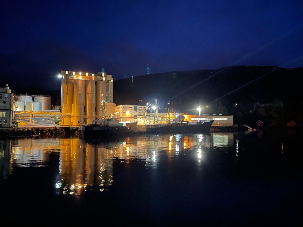 09:40 Förtöjda på Vedde i Ålesund och lastrummet inspekteras och desinficeras. Sedan kan vi börja lasta.