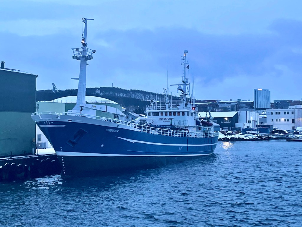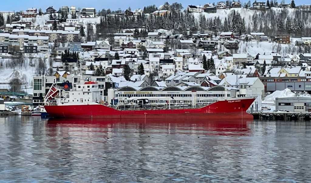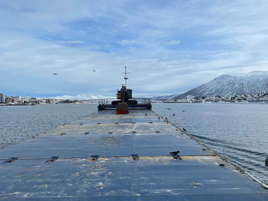 12:30 Förtöjda vid Trofi i Tromsö. Men det blir ingen lossning innan i morgon bitti om det är väder till det. Så jag går för att städa min hytt.
