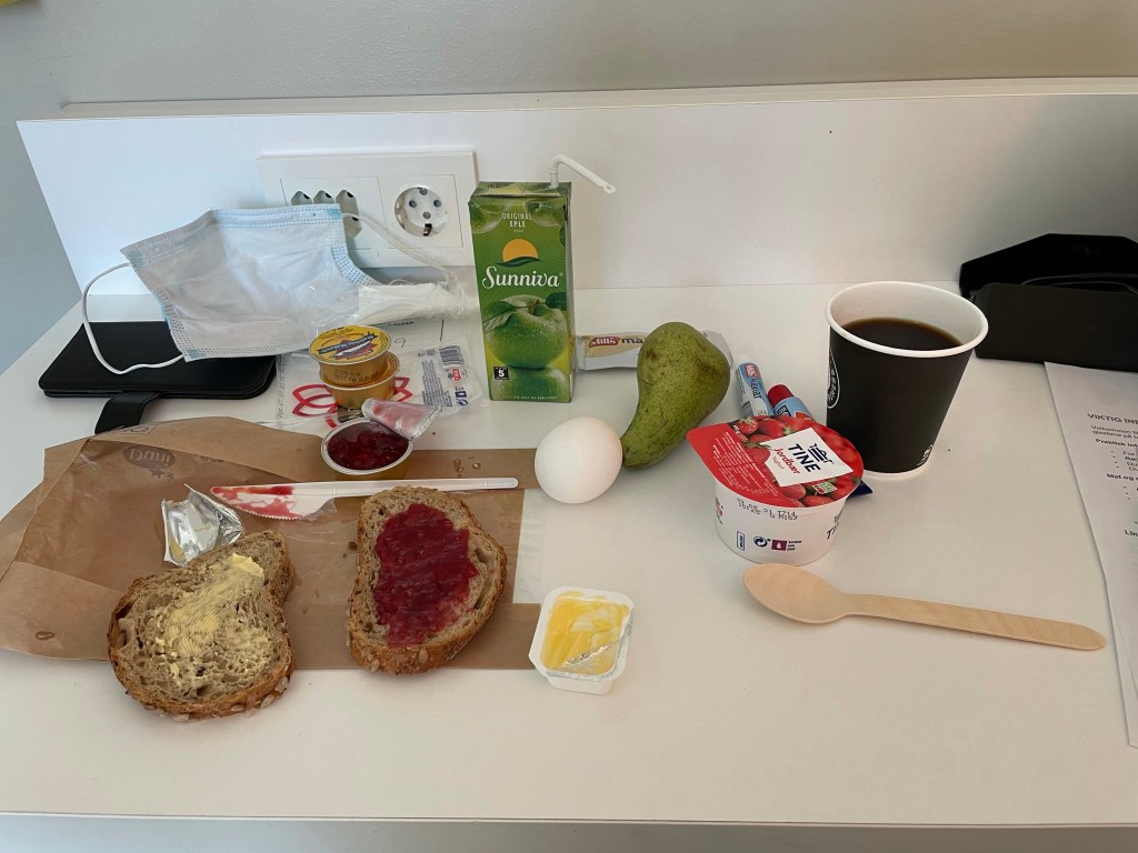 00:15-00:25 Buss till karantän hotell som blev Scandic Oslo AirPort Hotell. Där fick vi en genomgång av reglerna och sedan checka in. Gick till mitt rum för att göra mig klar att sova. När jag då snöt mig så fick jag ordentlig näsblödning som tog en stund att stoppa. Har ju tagit 2 Covid-19 tester i näsan och haft andningsskydd på mig hela dagen. Men till slut kunde jag lägga mig och somnade direkt.