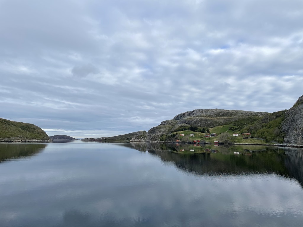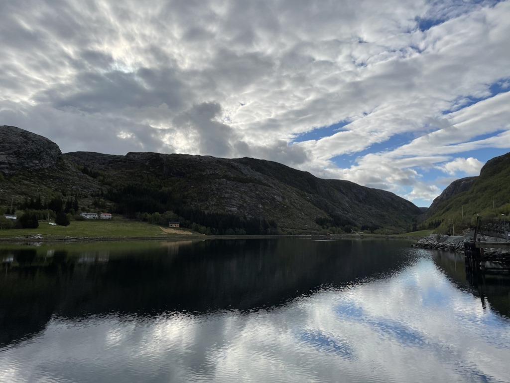 08:00 Kommer upp på bryggan och tar mitt morgon kaffe. Det är en riktigt fin morgon här i Hopsfjorden.