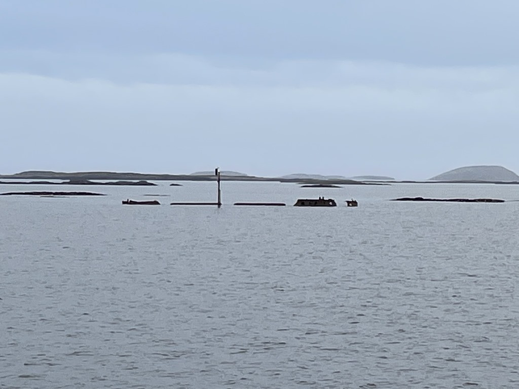 Passerar Vraket efter M/S Rensfjord som sjönk 1956. Hon var byggd 1944 i betong.