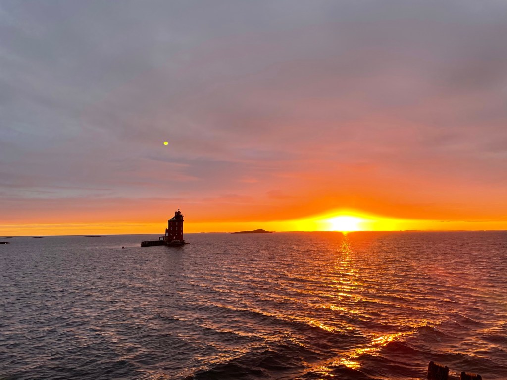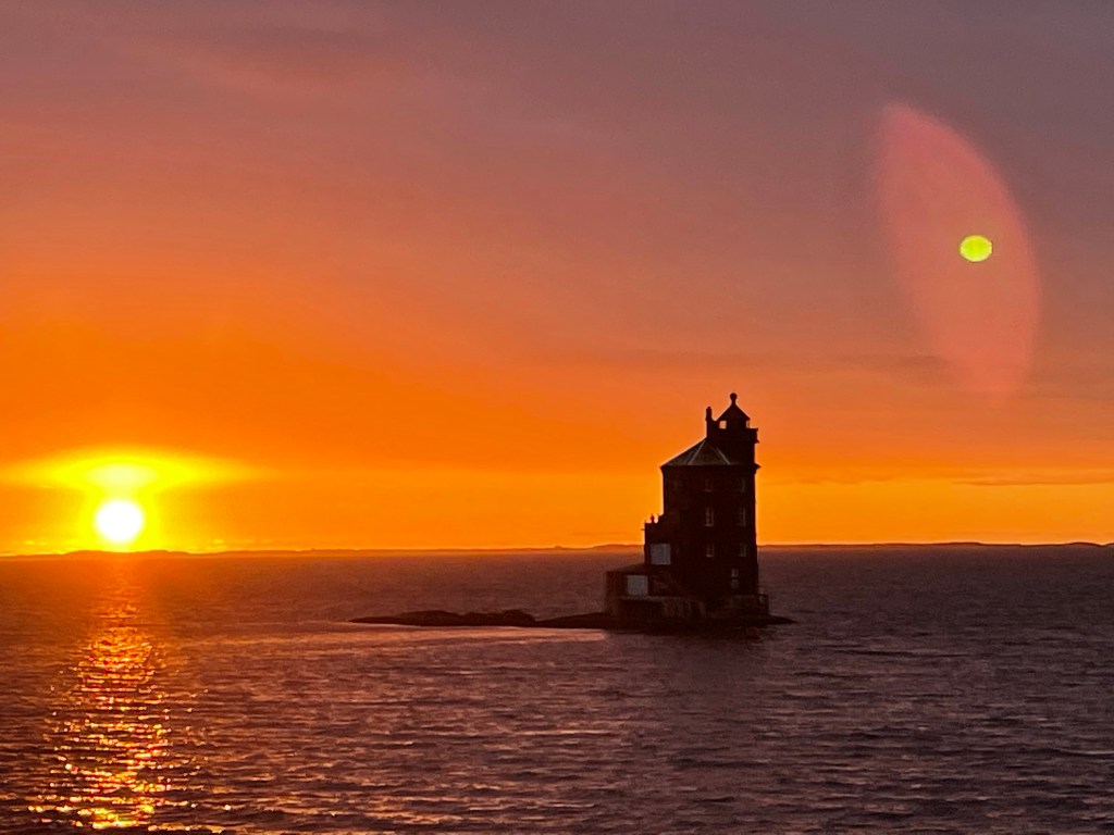 När vi passerar Kjeungskjær så ser jag att där är folk. Man kan nämligen hyra många av fyrarna längs Norska kusten och bo i som semester. Men det brukar vara ganska fullbokat så man får vara ute i god tid.