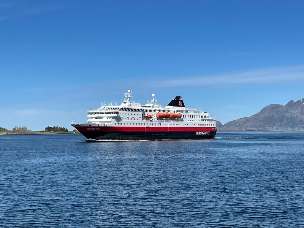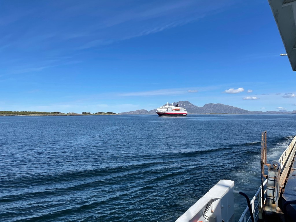 Möter hurtigruten Richard With syd om Sandnessjøen.