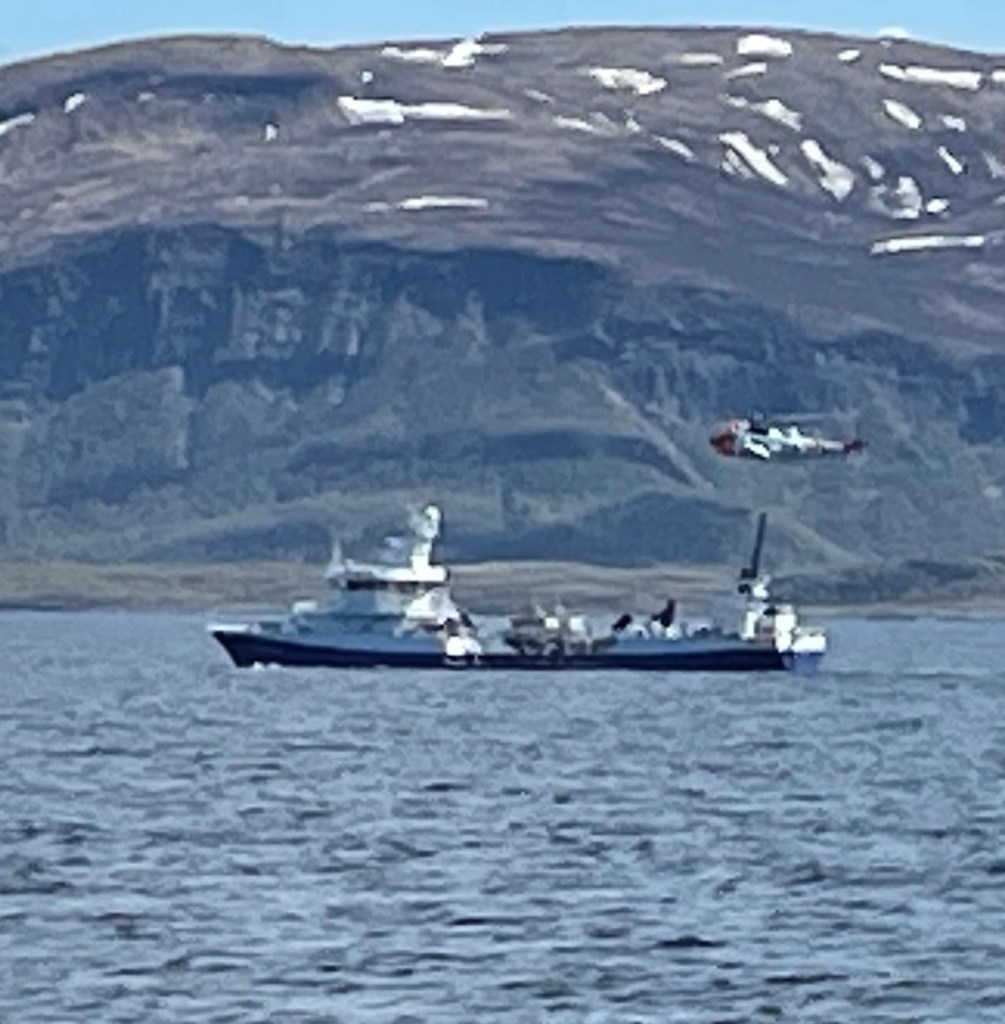 14:00 Går av vakten utanför Bodö och ser att sjöräddningen har övning med en båt.
