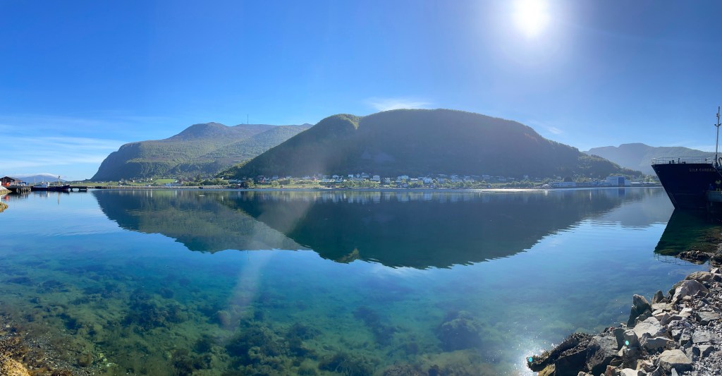 09:00 Förtöjda på Søviknes vid varvets väntekaj.