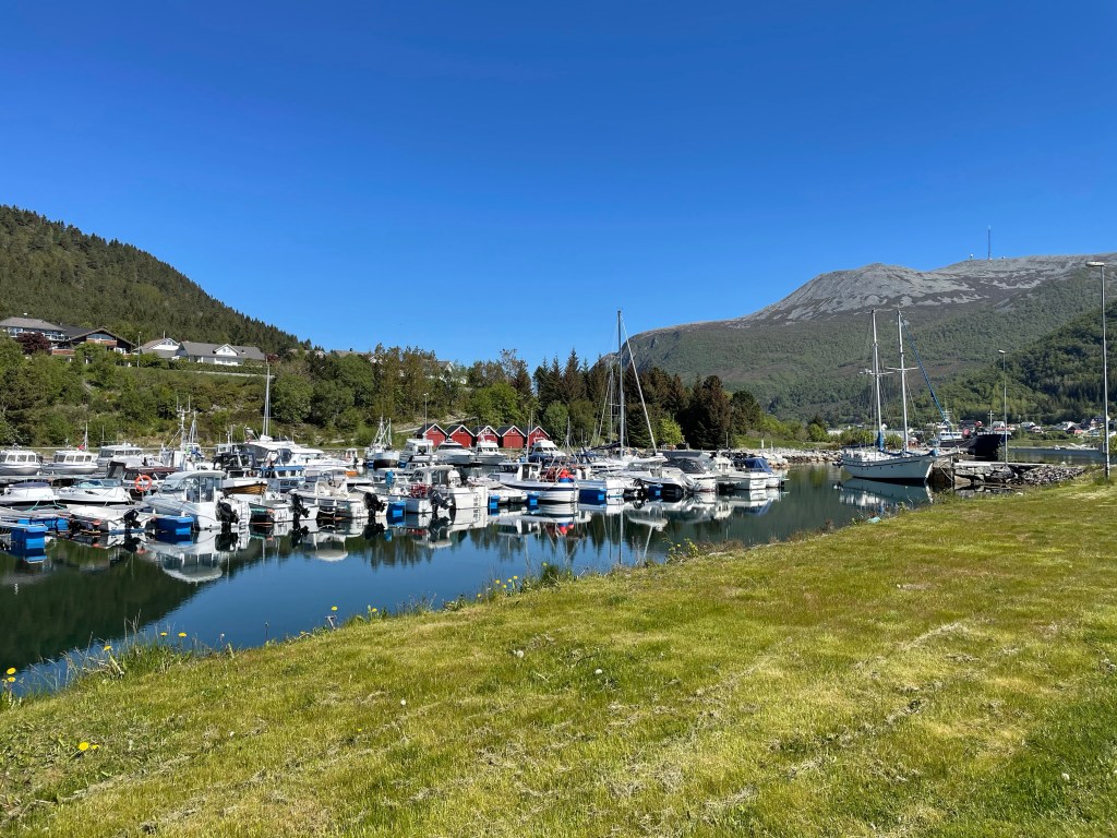 Efter lunch så går jag bort till småbåtshamnen dör det ligger en jättefin ställplats med utsikt över fjorden.