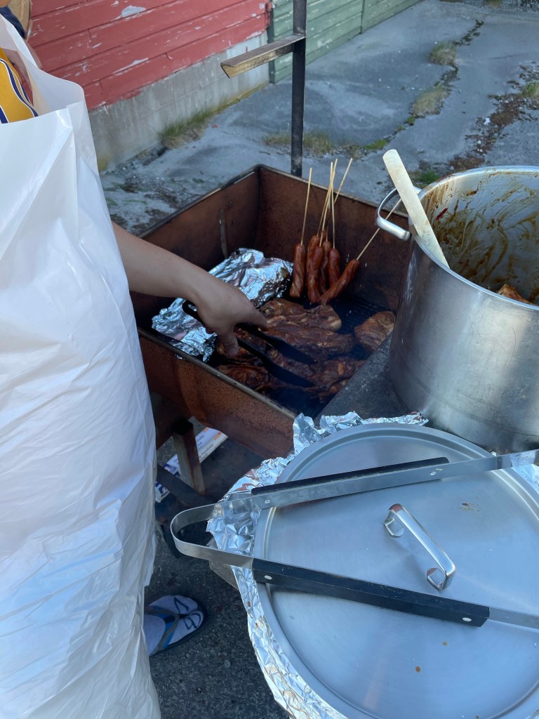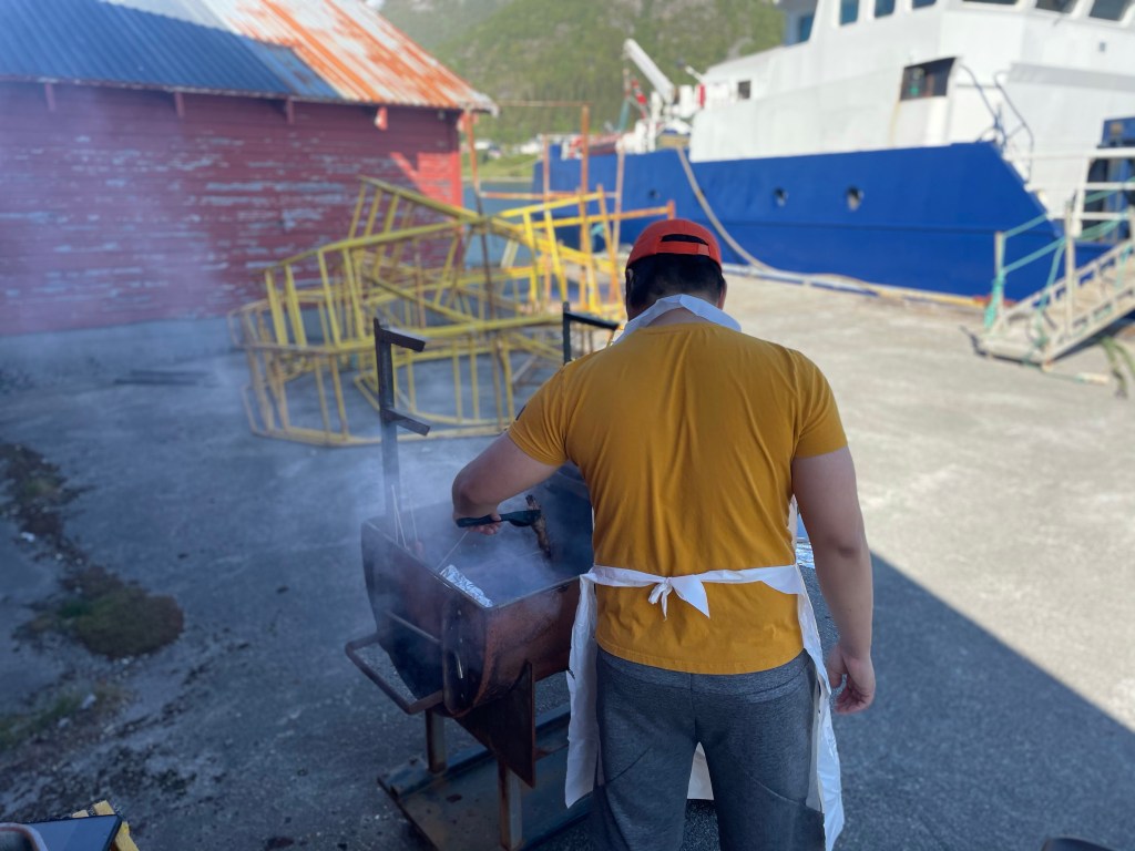 Till kvällen så grillar kocken på kajen och vi dukar långbord i solskenet.