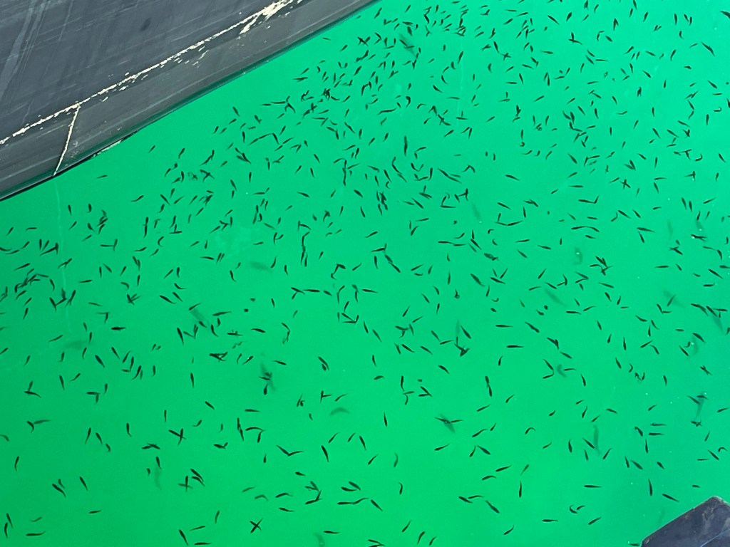 Det är mycket småfisk i vattnet.