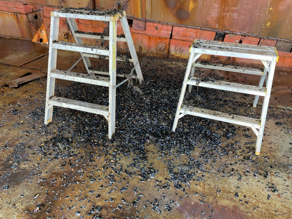 Vi öppnar upp ballast tanken och sätter dit en fläkt för att ventilera. Sedan är det bara att invänta morgondagen. Då skall jag ha möte med varvet och bestämma vad som skall göras. Sedan är det även dags för avmönstring.
