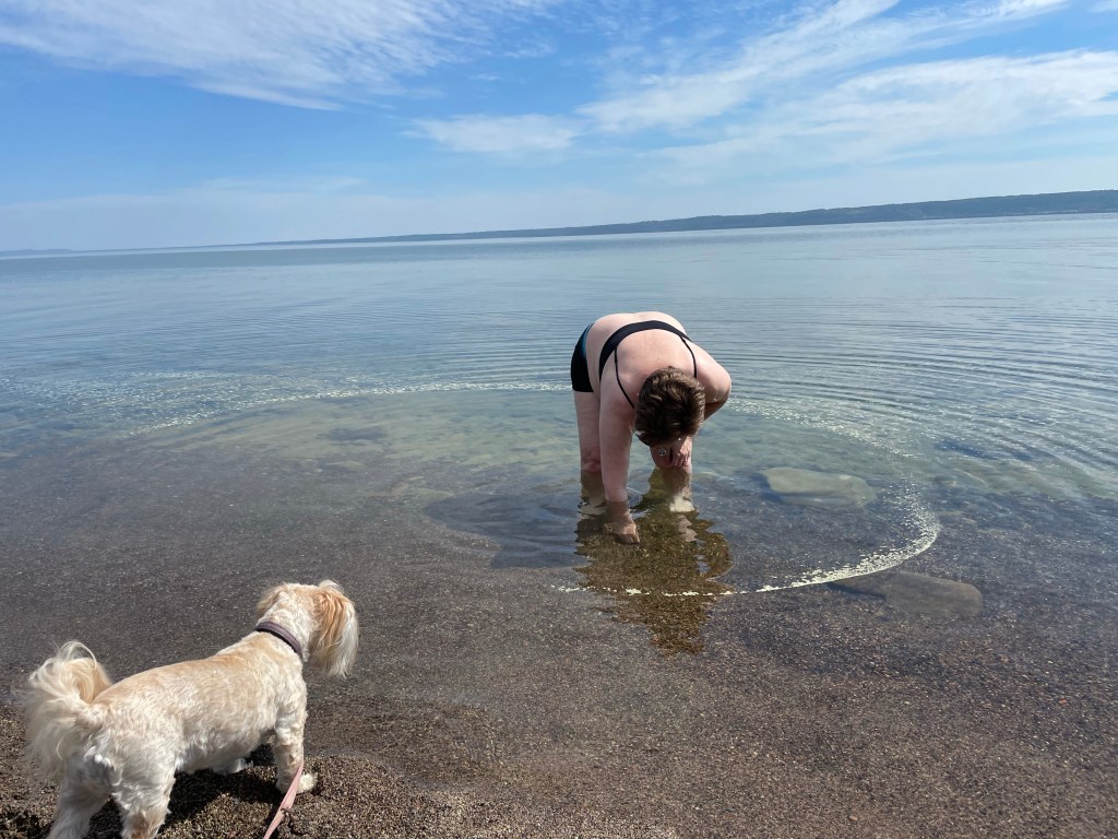 Britta går ut för att kolla temperaturen men det blir inget dopp.