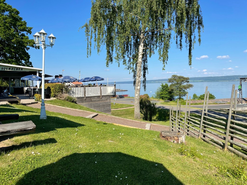 Britta beställde Halstrad Röding och jag tog en Wienerschnitzel. Det var riktigt gott och fin utsikt över Vättern.